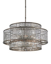 The Fantine Large Chandelier has shades made of Raj mirror that strikingly resemble mercury glass. The Pyrite bronze finish on the metal of this mirrored chandelier echoes the mottled tones in the glass to create synchronicity. The Fantine is also available in a small chandelier and a wall sconce.