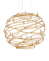 Swirls of thin rods of wrought iron in a contemporary gold leaf finish make up the shade of the Franchette Orb Chandelier. The gold chandelier holds an astonishing 26 lights that will cast whimsical patterns on surrounding surfaces.