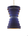 Created in the Color Field tradition of the 1940s, the Graduation Large Chandelier has nine wide rings of wrought iron in alternating hues of blue. The interiors of the rings in contemporary gold leaf and new gold leaf finishes enhance the glow of the illumination from this blue chandelier.