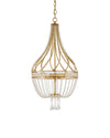 Dazzling strands of beaded crystals swirl about the upper half of our Ingenue Gold Chandelier. These shapely crystal drops and swags seem heavier than the beads dangling below. An antique gold leaf finish enlivens the classic empire style chandelier.