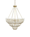 The Magnum Opus Large Chandelier is a clean-lined version of a vintage design, meticulously conceived to bring elegance to any space. The rows of glass leaves attached to the three-tier metal stems effervesce when light strikes them to create a stunning sculptural fixture. The white glass also beautifully contrasts the metal in a brass finish, the cool/warm contrast bringing the gold chandelier a heightened level of texture. The beautiful white glass leaves also surround the seven bulbs on this fixture to infuse a space with a lovely glow.