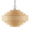 The grasscloth cylinders that make up the Maura Natural Pendant bring an elevated design statement to the fabric shades on this tan pendant. The metal frame in a satin black finish is a contrasting element to the natural grasscloth shades, which are trimmed for a more sophisticated profile. Though on the surface this design is seriously simple; it is far from it, as the uniformity of the layered shades seen when looking up into the fixture is a precise effort that takes great skill.