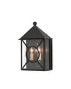 The Ripley Medium Outdoor Wall Sconce in our Twelfth Street collection of outdoor lighting features a high-performance, weather-resistant Trilux finish that is fade resistant, crack resistant and rust resistant. We guarantee the finishes applied to our Twelfth Street pieces for five years. The metal on this black sconce in a midnight finish surrounds seeded-glass panes.