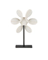 The propeller shape of the Helice Large Marble Ring will be a dynamic presence in a space; the white sculpture a feat only an accomplished stone carver could create. The flowing lines as they reach the bottom of the piece envelope the black metal stem to which it is attached. The stem and the base are pared down, adding a nice contrast tonally and structurally. Because the Helice is carved from natural marble, each sculpture will vary slightly.