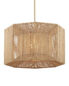 The Mereworth Chandelier has an octagonal wrought iron frame around which natural abaca rope has been painstakingly wrapped to create its shade. The rope chandelier emits a warm glow thanks to the color of the abaca. The material also lends the chandelier a nautical feel that makes it perfect for seaside retreats and oceanfront homes. One of the interesting design attributes about this fixture is how thick the structure is when seen from below.